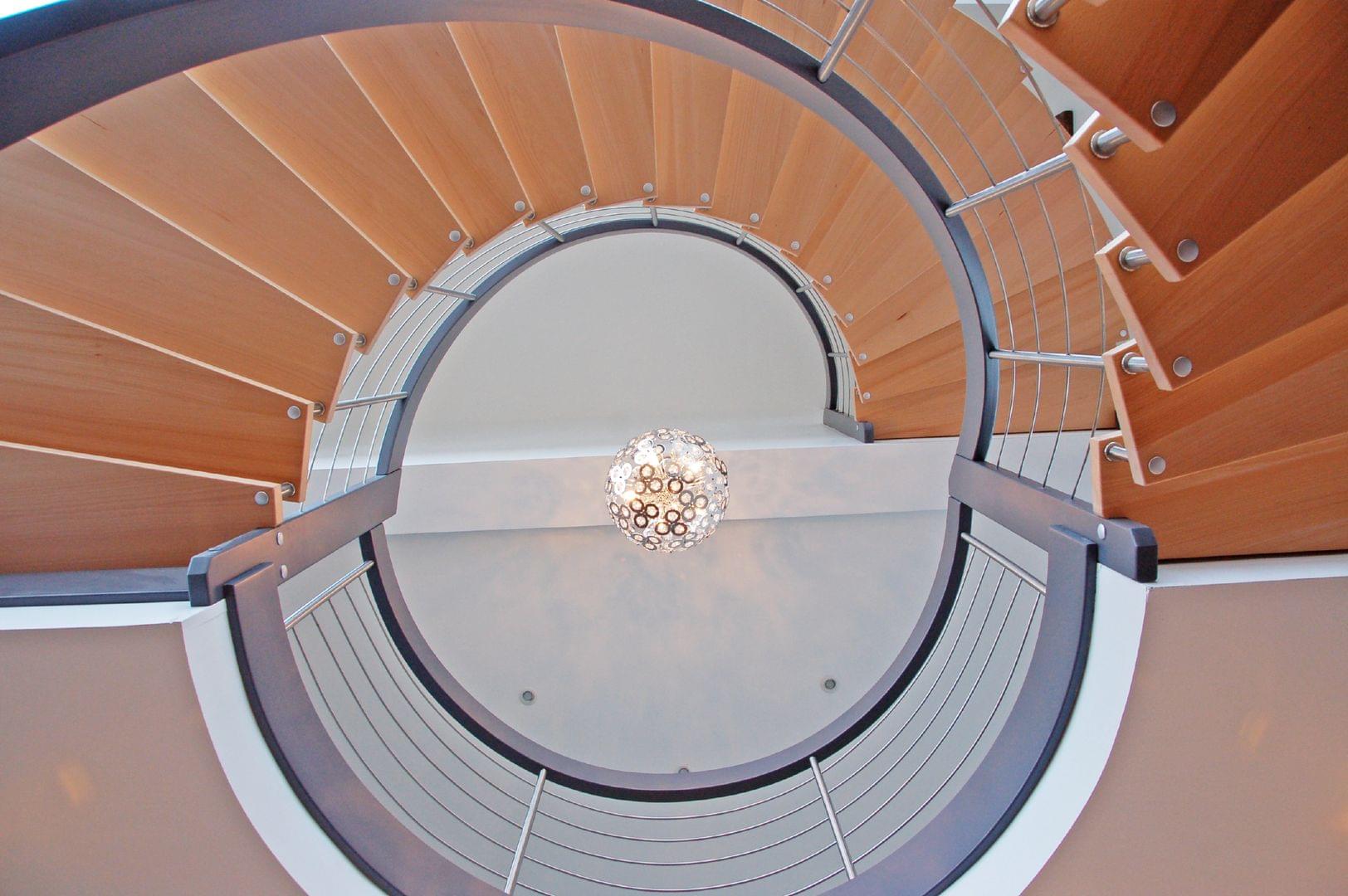 Wendeltreppe bzw. Bogentreppe mit Edelstahlgeländer Treppenmeister 570b