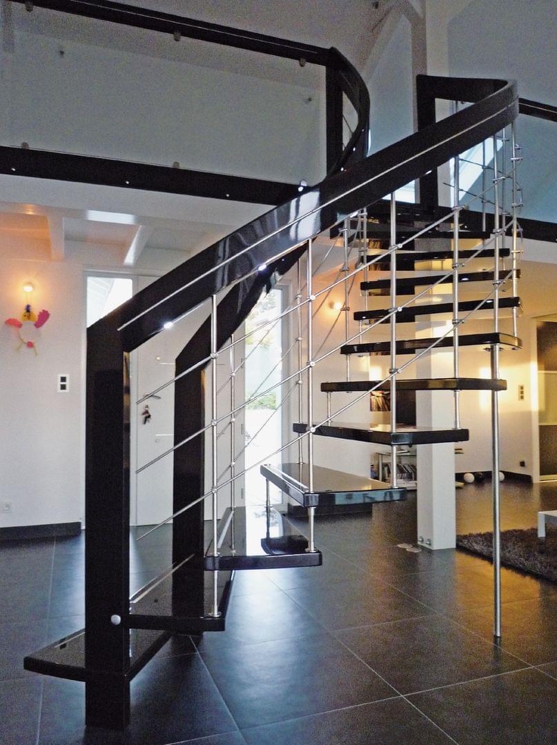 Wendeltreppe schwarz lackierte Spindeltreppe mit Edelstahlstufeneinsatz Treppenmeister 343c