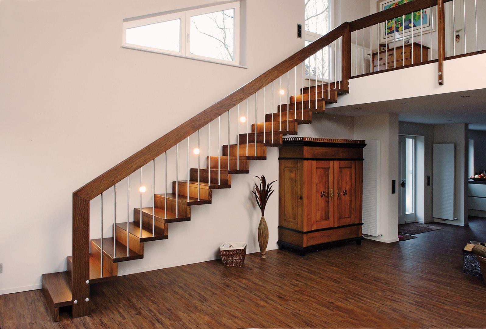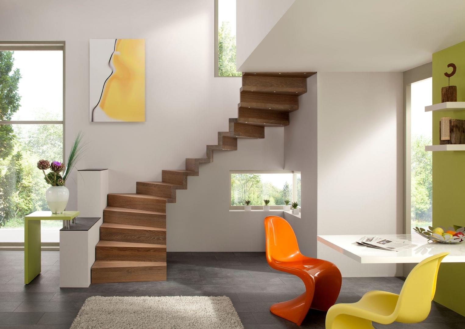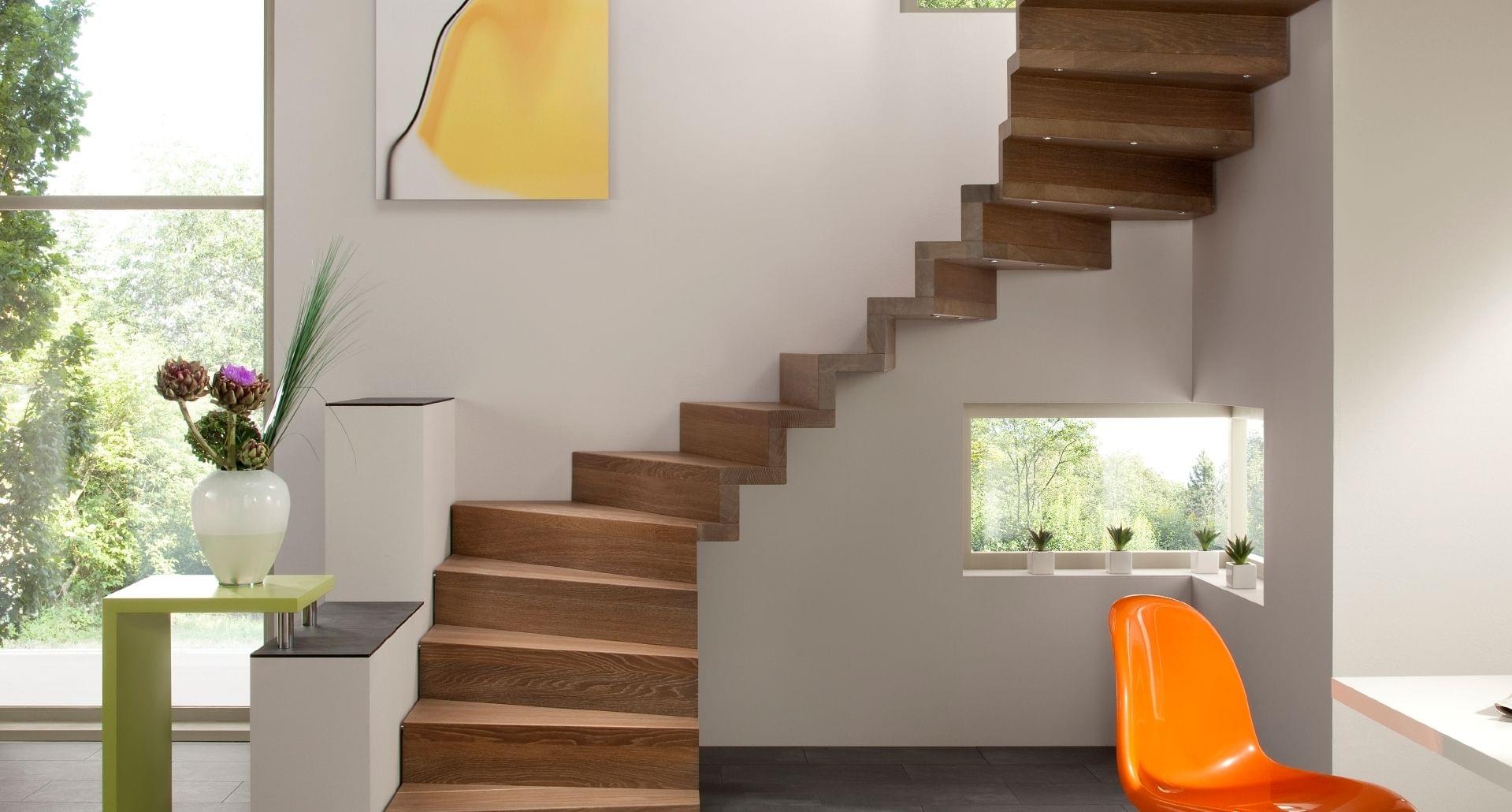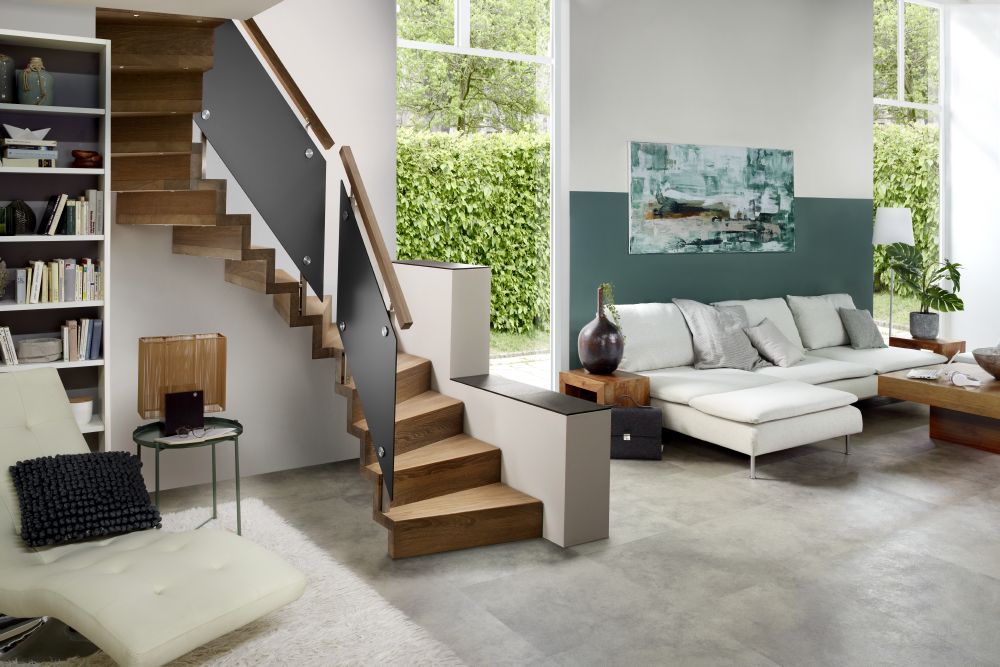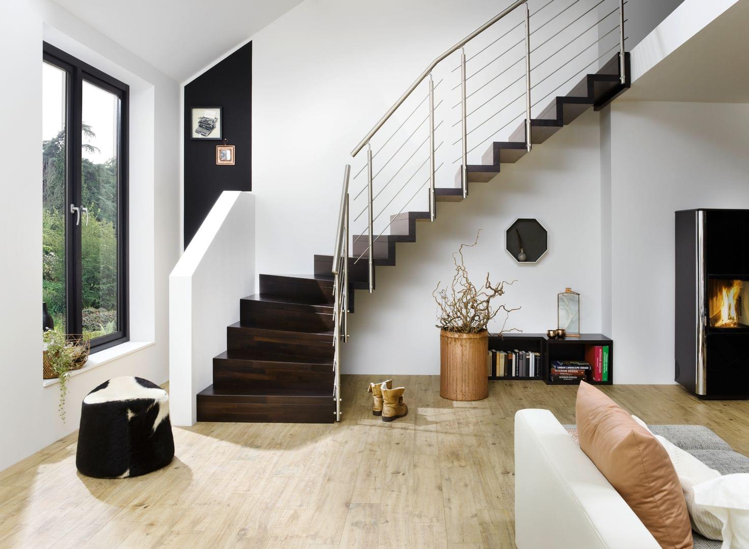 Treppen mit einer so klaren Formensprache bereichern den Wohnraum wie eine Skulptur. Aufgrund ihrer offenen Konstruktion lassen sie oft mehr Licht durch. Außerdem können sie dazu beitragen, kleinere Räume größer erscheinen zu lassen.