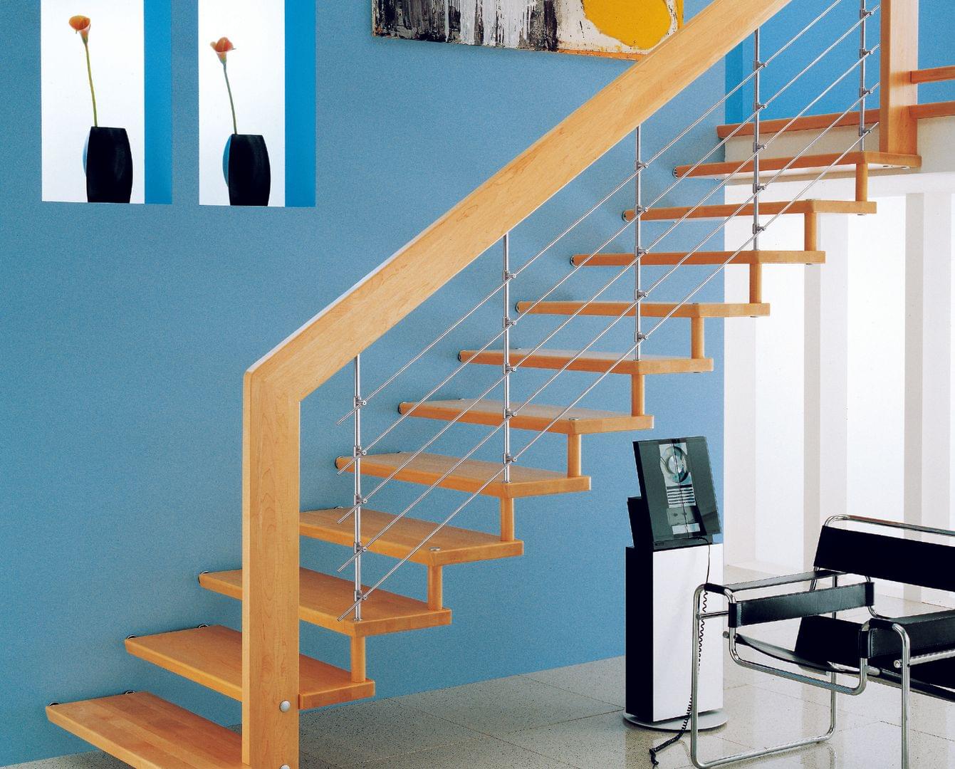Nova ist eine Holztreppe System Treppenmeister mit Relinggeländer. Stabile Stufen mit eleganten Beschlägen befestigt an der Wand und am Geländer verbunden. Schallmindernd und trittelastisch. Erhältlich in Holzarten wie  Buche, Ahorn, Birke und anderen Harthölzern.