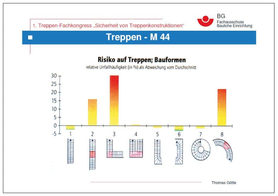 Auflistung zeigt. Durch eine fachmännische Planung der Treppenanlage, sowohl bei Neubau als auch bei Renovierung, lassen sich diese Unfallursachen entweder ganz verhindern oder zumindest deutlich reduzieren.