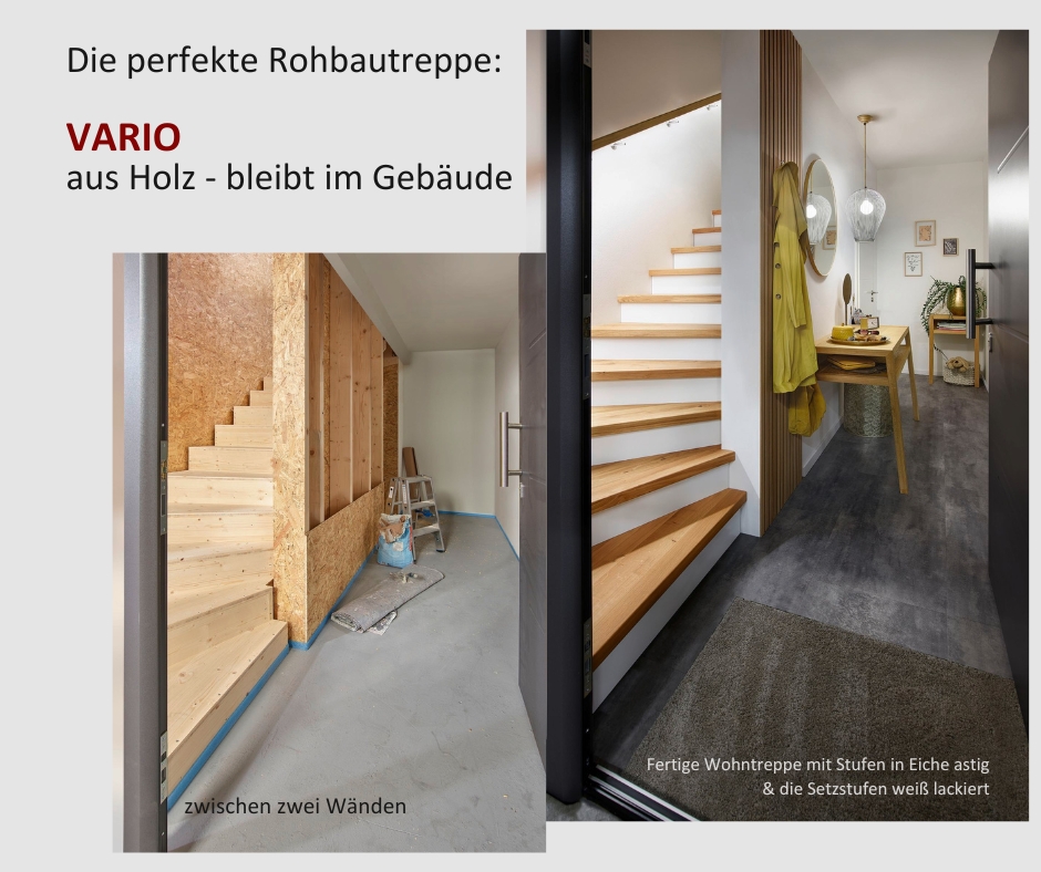 Die Rohbautreppe Vario aus Holz.
