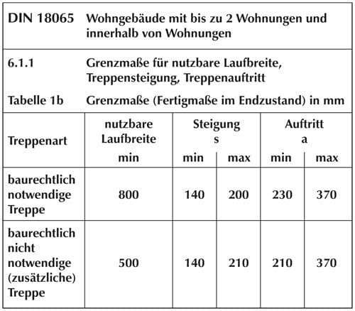 Die bequeme Begehbarkeit einer Treppe wird je nach Alter und Gehgewohnheit ganz unterschiedlich empfunden. Welches Mindest- und Höchstmaß bei Treppen gilt, regelt in Deutschland die DIN 18065.