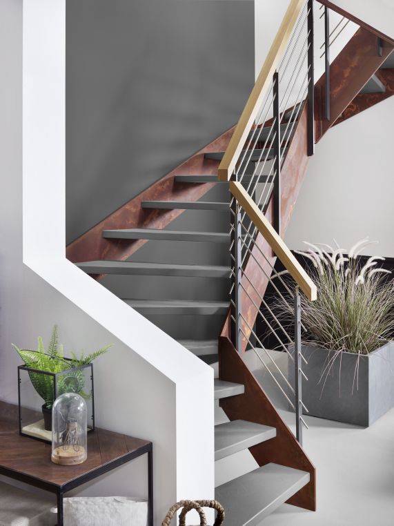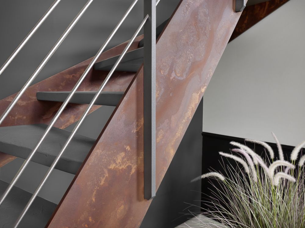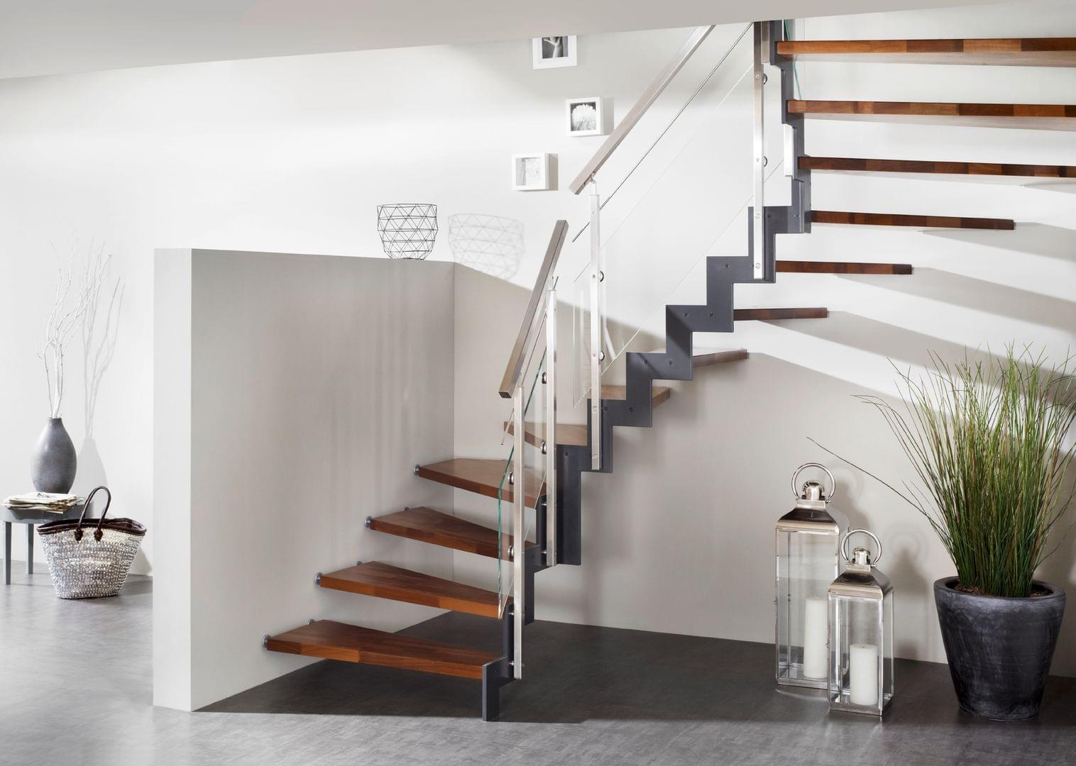 Stahlwangentreppe ohne Stahlwangen dafür Verbundwerkstoff mit Podest Treppenmeister 5225i