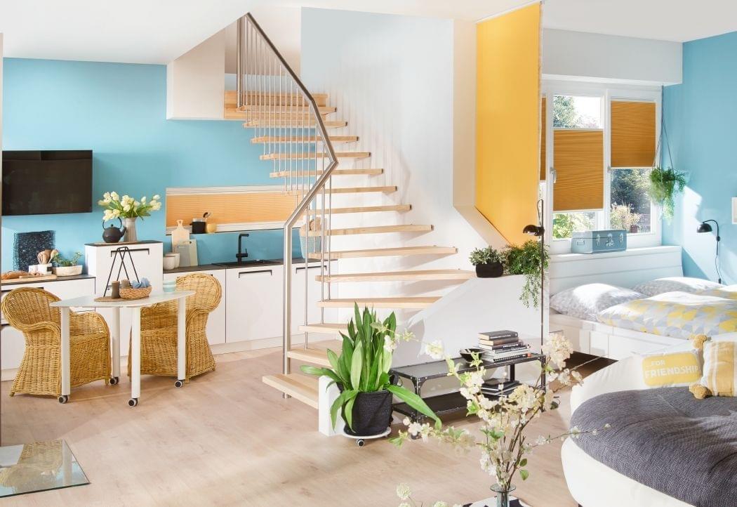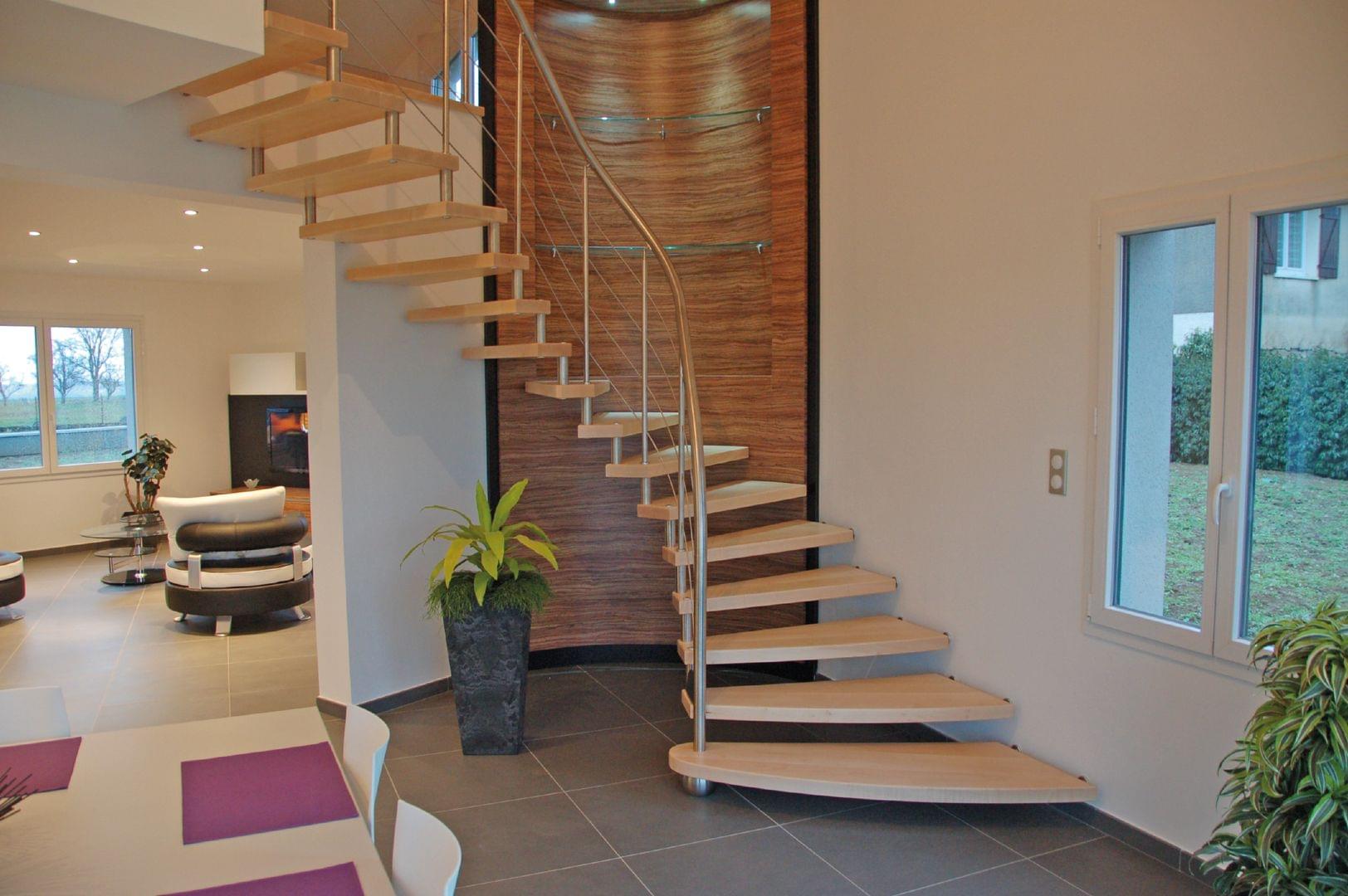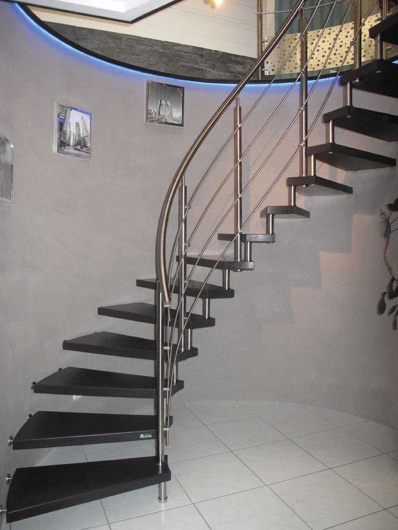 Bolzentreppe Bolero viertelegewendelt mit Edelstahlgeländer Treppenmeister 5169c