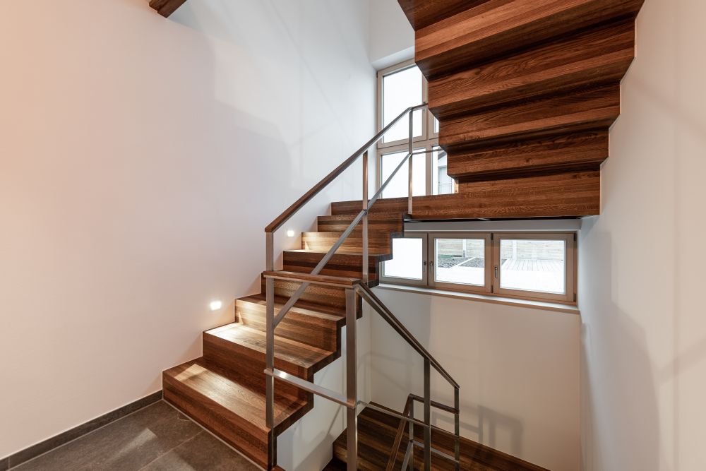 Wangentreppe über mehrere Stockwerke Schmalwange und Podest Treppenmeister 5212h