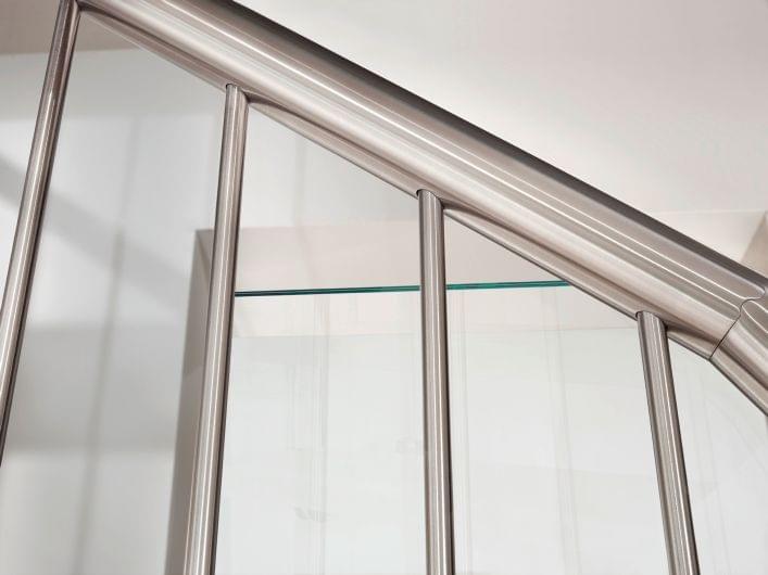 Während der Handlauf der Systemtreppe mit Holzhandlauf imposant erscheinen mag, ist der Edelstahlhandlauf viel dünner und wirkt leicht und elegant.