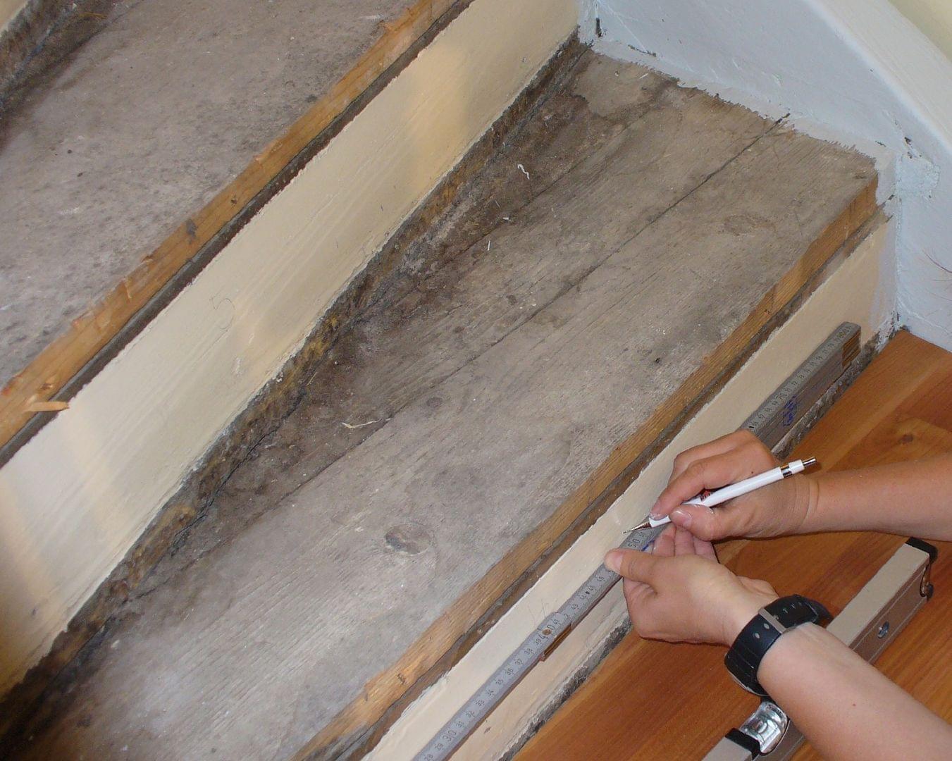 Die Stufenverkleidung einer geraden Treppe ist für Heimwerker noch relativ leicht zu bewältigen. Sobald die Treppe aber eine oder mehrere Wendelungen aufweist, wird es schwierig mit den Abmessungen. Treppenbaumeister benutzen dabei heutzutage für die Stufenverziehung CAD-Systeme, mit denen die Maße der einzelnen Stufen millimetergenau ausgerechnet werden.