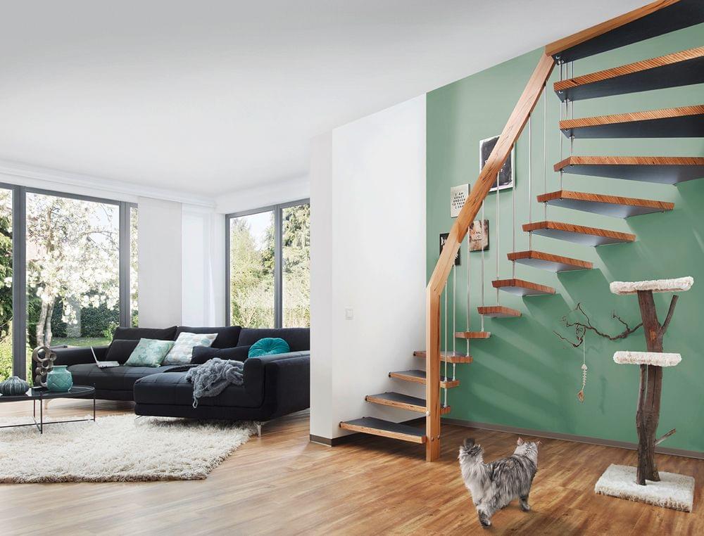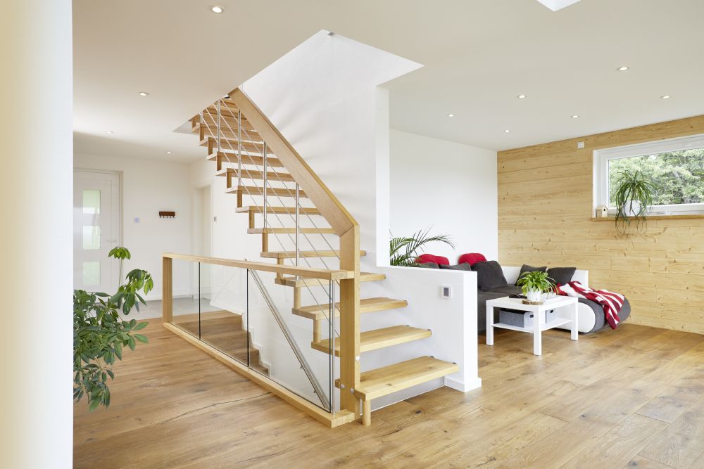 Außerdem ist es ratsam, jetzt schon an die Zukunft zu denken und eine barrierefreie Treppe einbauen zu lassen. Sei es für Senioren im Haushalt oder für später im Rentenalter.